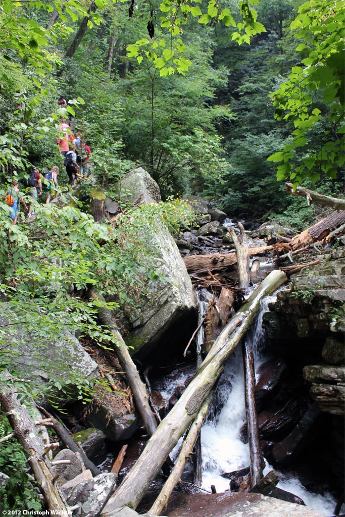 Unterwegs findet sich dieser erste - kleinere - Wasserfall. Ob hier Bieber am Werk waren, ist nicht bekannt.