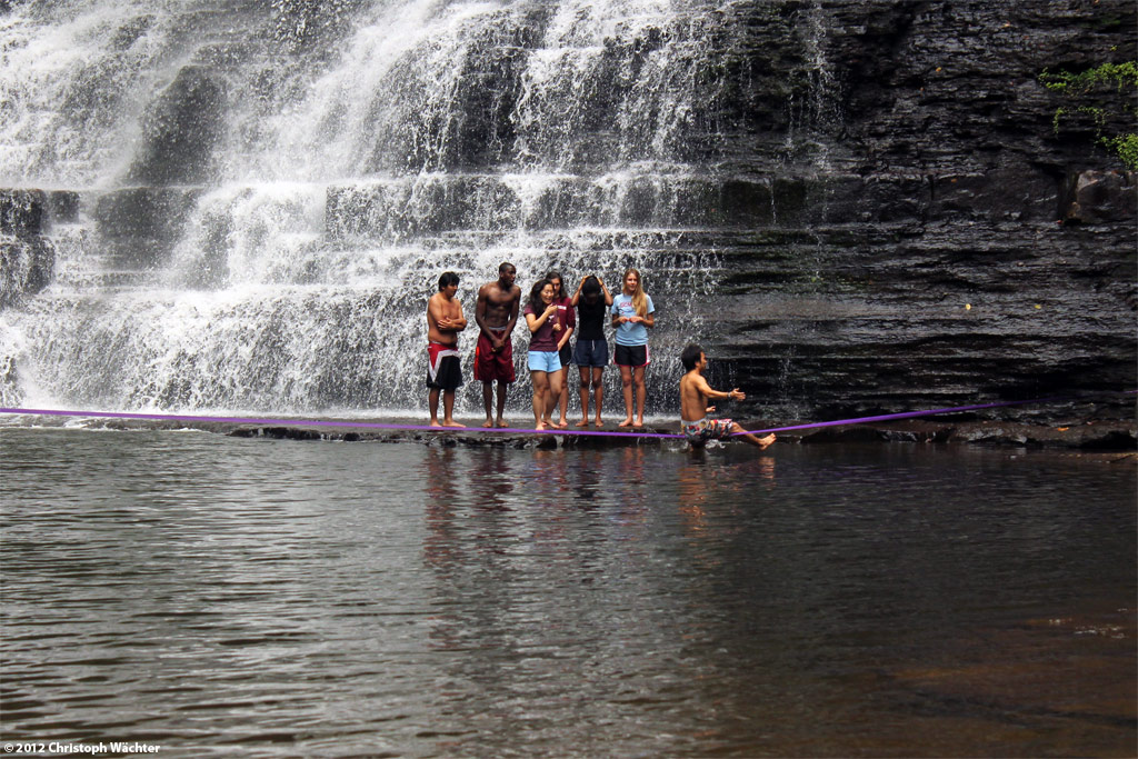 Des Rätsels Lösung: Slacklining. Erstaunte Blicke ruft es trotzdem hervor.